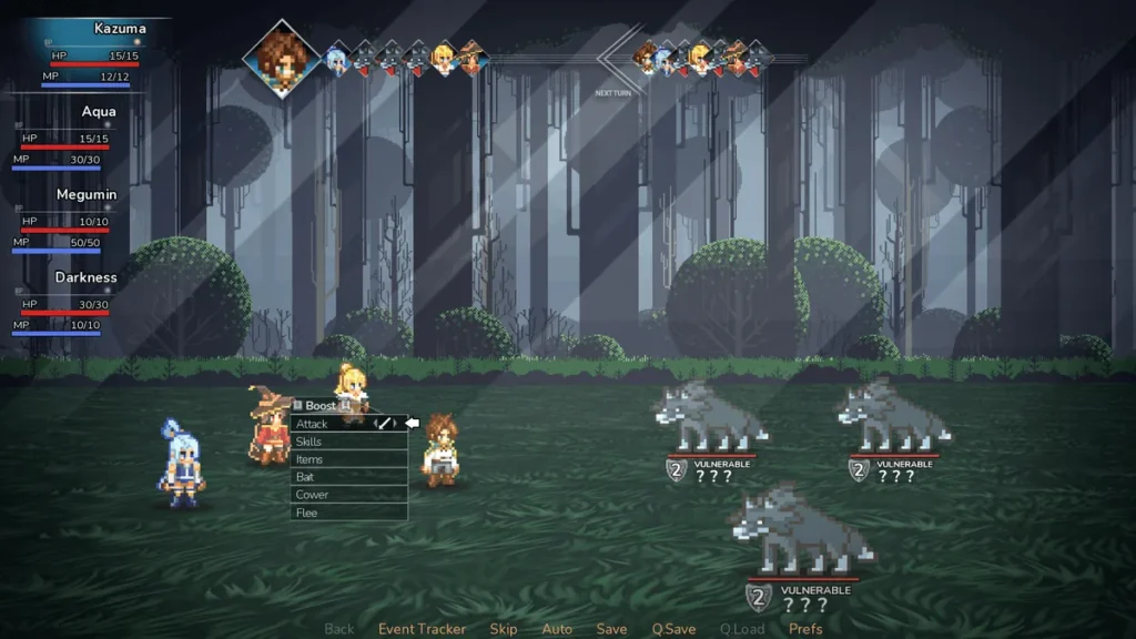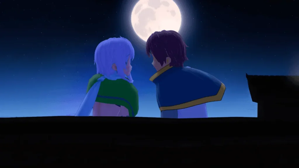 * Bonding with your party members? Increase your relationship with Megumin, Darkness, and Aqua through conversations, gifts, and shared activities. Their affection levels unlock new story events, special scenes, and even combat perks.