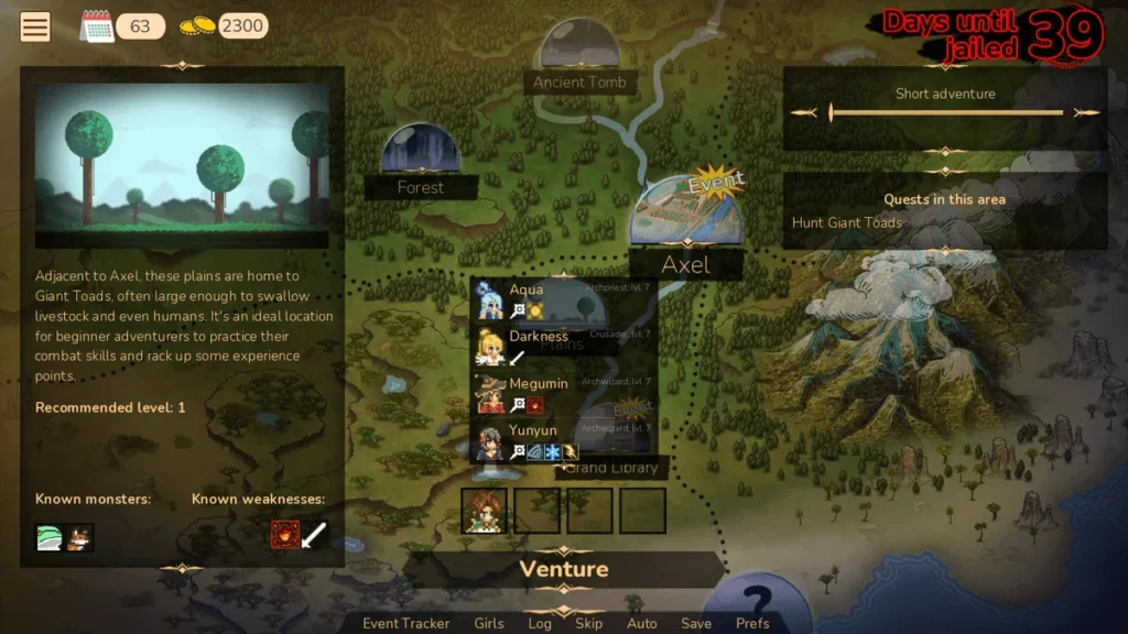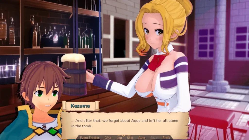 The moment you boot up the Adventurer Trainer game, the homage is immediate and perfect. You step into the (somewhat dirty) boots of Kazuma Satou, the famously unlucky and pragmatic NEET hero. The game doesn’t just copy the characters; it captures their essence. Megumin’s obsession with explosion magic and subsequent daily collapse, Darkness’s… unique desires for peril, and Aqua’s glorious uselessness and ego are all portrayed with spot-on humor. The writing nails the source material’s tone—that perfect blend of fantasy adventure satire, party-member dysfunction, and laugh-out-loud situational comedy.