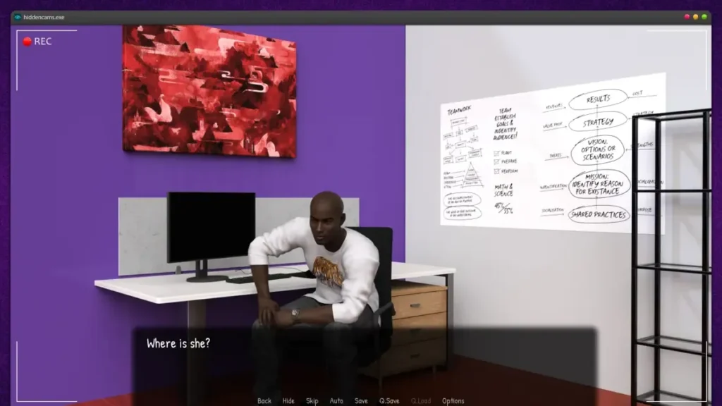 | Hidden Camera Network | Clickable feeds throughout the office building allowing real-time observation. | Drive the story by discovering secret scenes; builds narrative tension and unlocks CGs. |