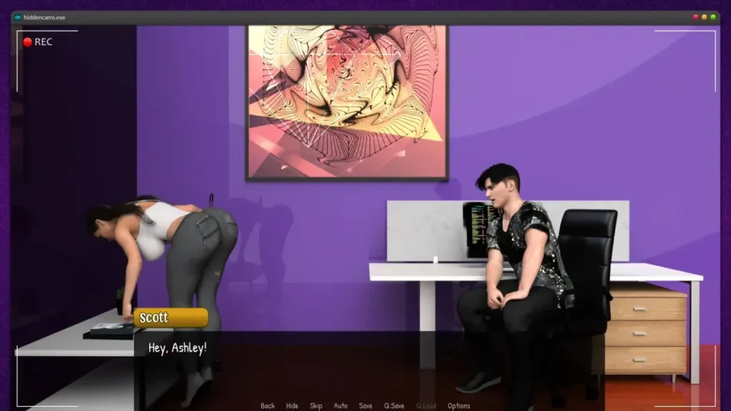 The genius of the Girlfriend Unfettered gameplay loop is how it turns you into an active, yet hidden, participant in Ashley’s world. You’re the owner of a software company, and Ashley has come to work for you. Your office is wired with cameras, giving you a god’s-eye view of her entire day. This setup is the beating heart of the NTR visual novel experience. You’re not just reading a story; you’re discovering it, piece by secret piece, fueld by a mix of curiosity, desire, and maybe a little anxiety.